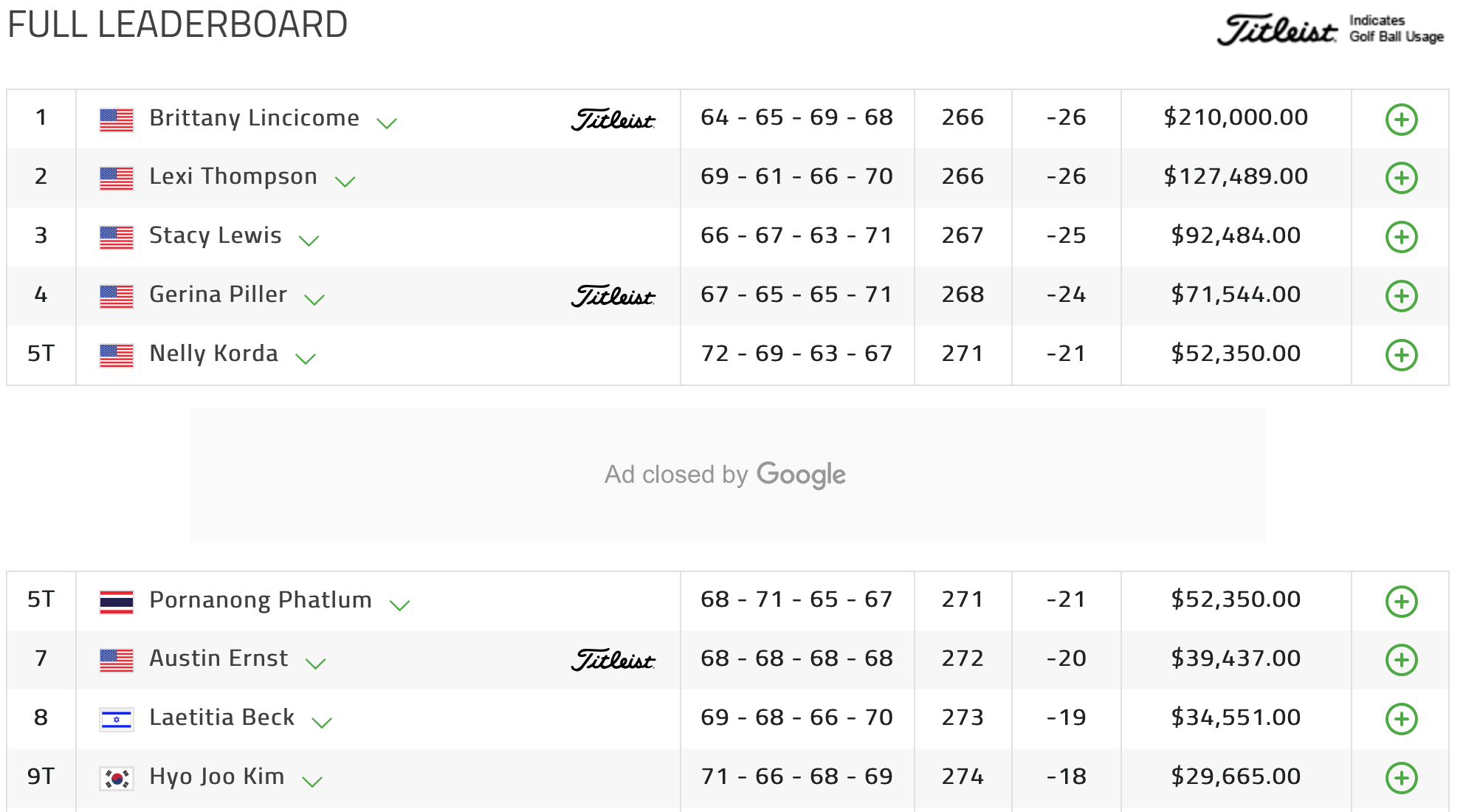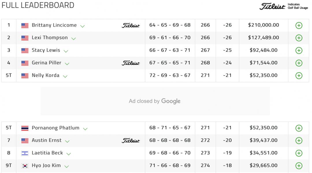 lpga 공홈에서 결과를 살펴보니 미국 선수들이 10위안에 무려 6명이나 들어갔네요.