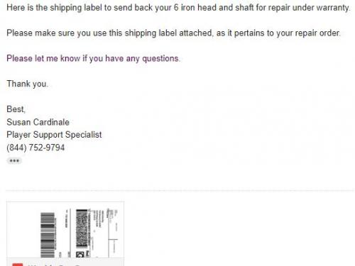 이전 아이언 파손으로 인해 PXG랑 메일을 주고받으면서 어찌어찌 리턴라벨까지는 받았습니다.