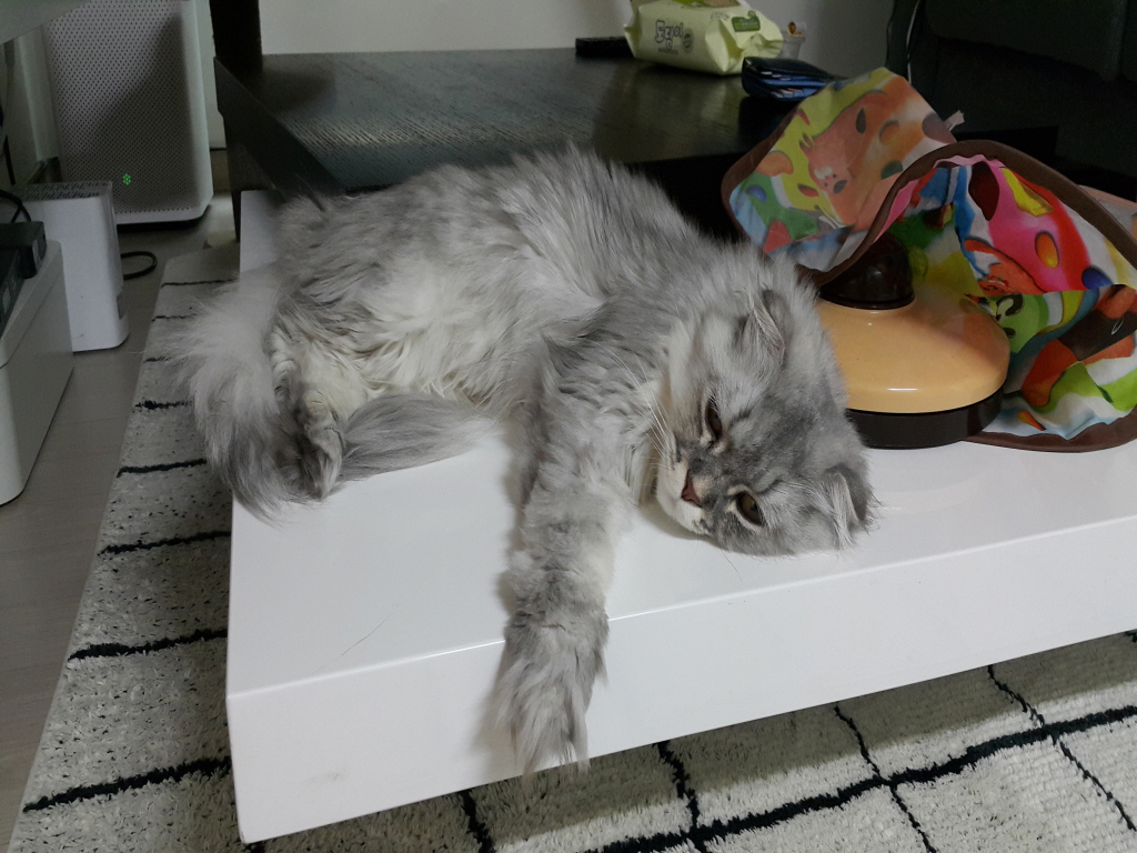 갈색아이는 펠샨 종이고 흰색아니는 스코티쉬폴드입니다.