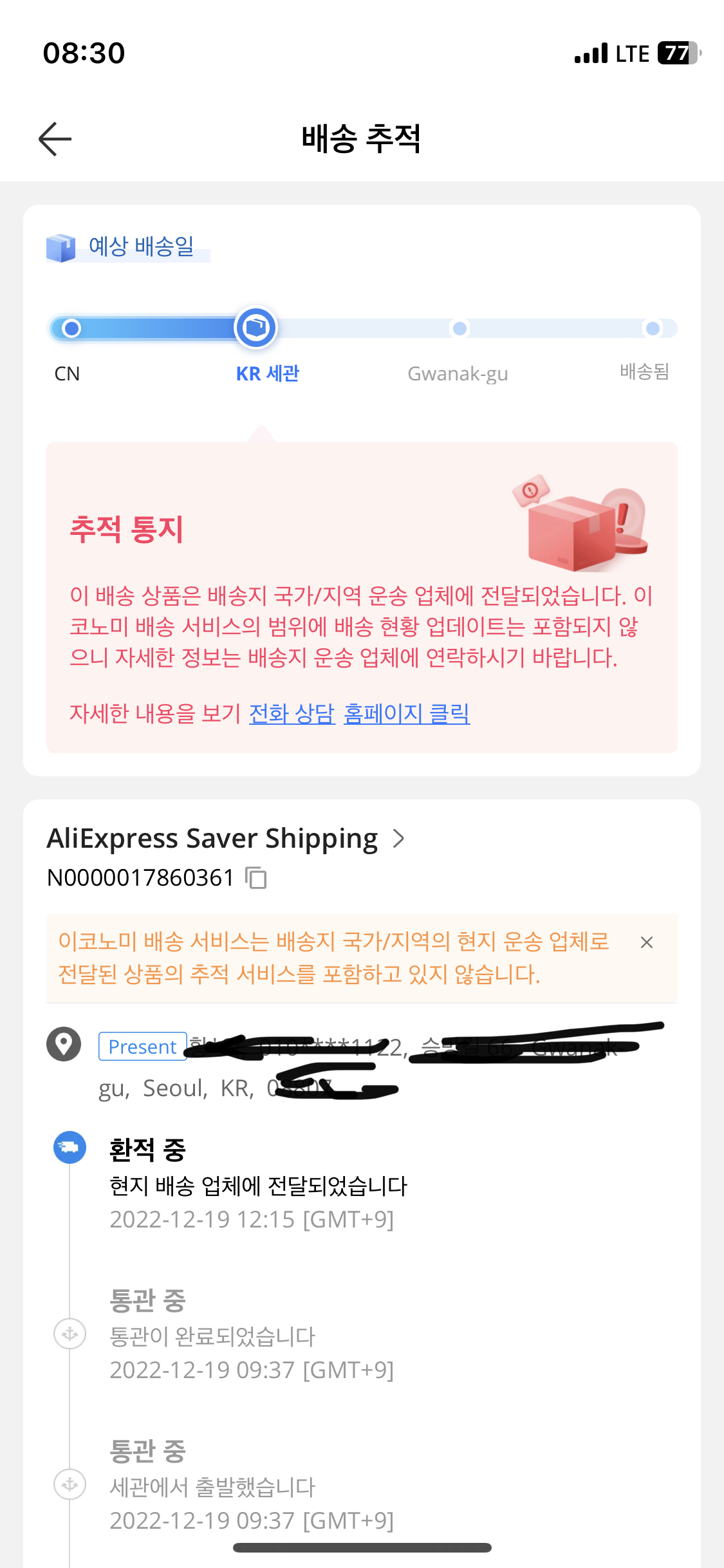 얼마전 알리 배송지연으로 한달이상 묶여있다가 통관지연이 뜨길래 전화해봤습니다.