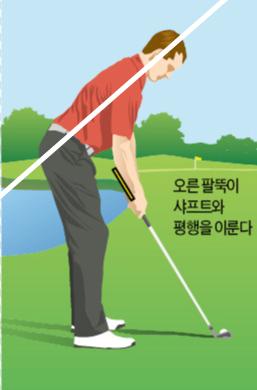 잉? 오른팔뚝이 샤프트와 평행을 이룬다? 저게 맞는건가요?