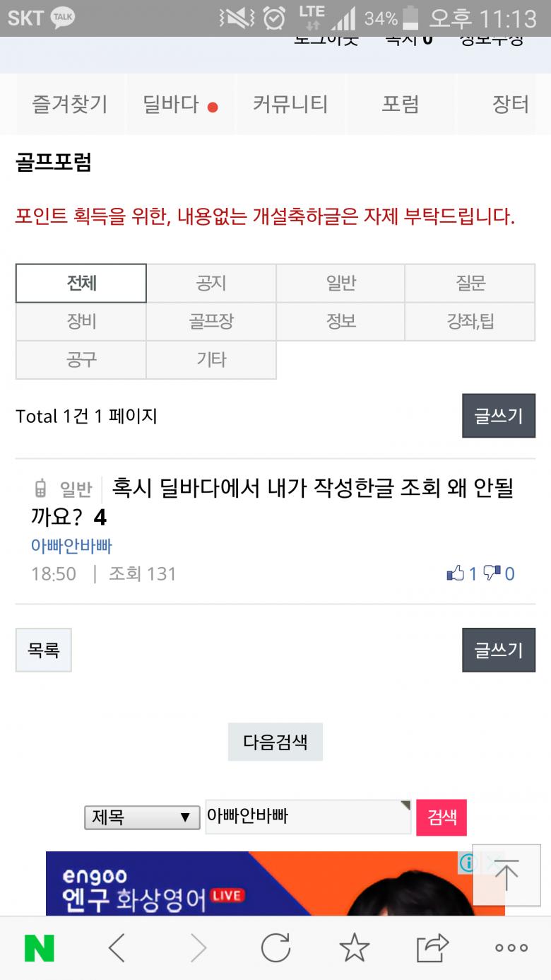 혹시 딜바다에서 내가 작성한글 조회 왜 안될까요? > 골프포럼
