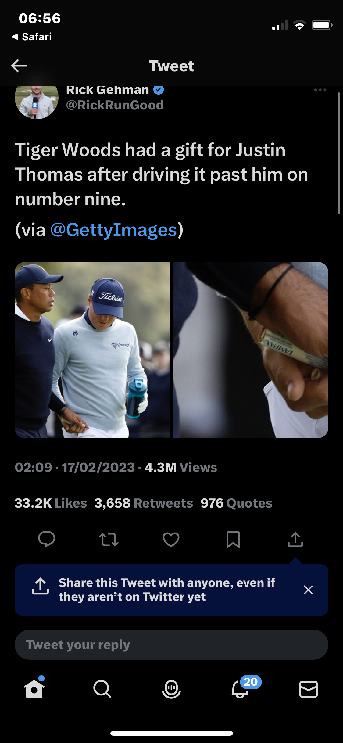 타이거가 드라이버 더 멀리 쳐서 JT 놀리려고 한게 아닐까요? ㅋㅋ | ||