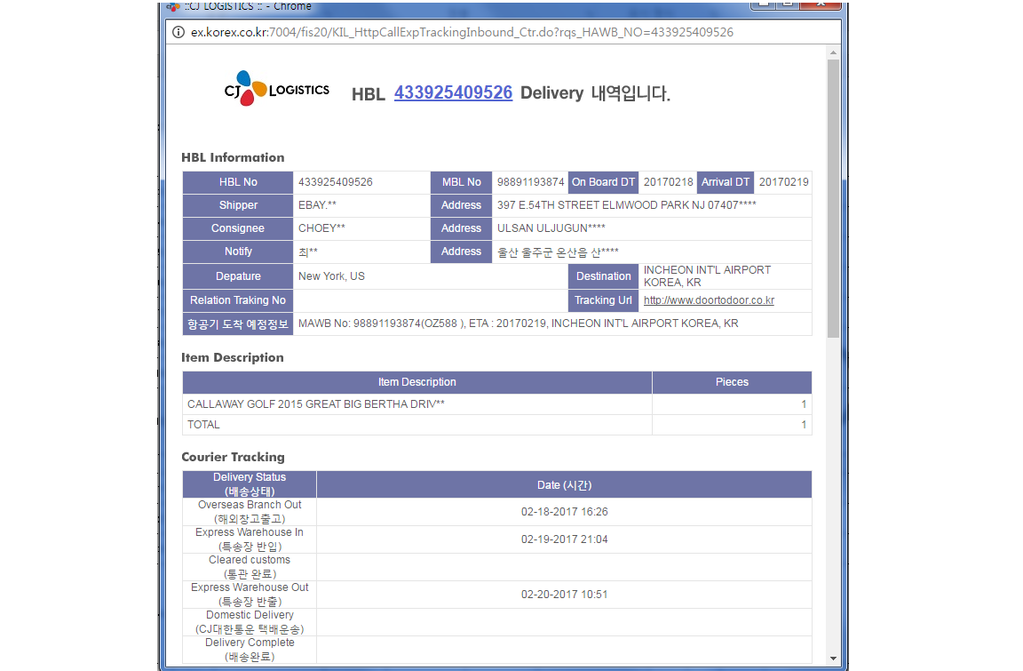 배송조회 해봤는데 이상태면?? > 골프포럼