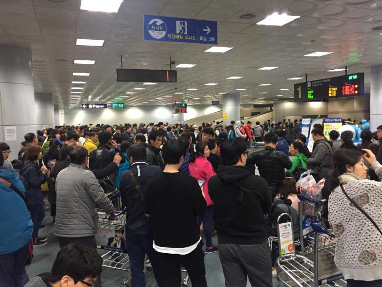 19일 일요일 아침 김해공항 수화물 찾는 광경입니다.