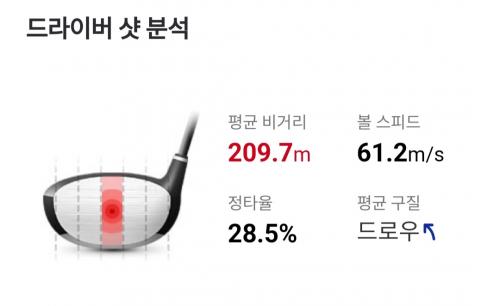 원래는 드로우 구질인데 페이드가 걸린다.(후반에는 좀 왼쪽으로 에임하고 쳤습니다.)