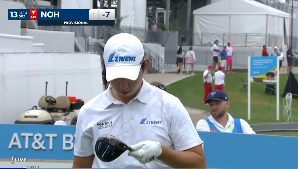 그 후 2홀을 더 티샷이 잘못되는걸 보고 교체를 허락받아서 16번홀에서 헤드를 새걸로 바꿨다네요.