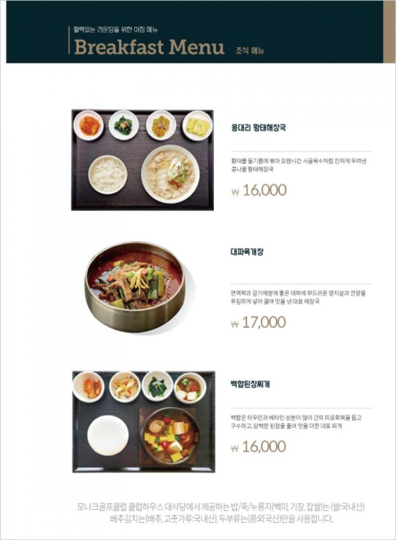 5. 클럽하우스 레스토랑의 아침 식사가 충실하고 합리적인 가격이다.
