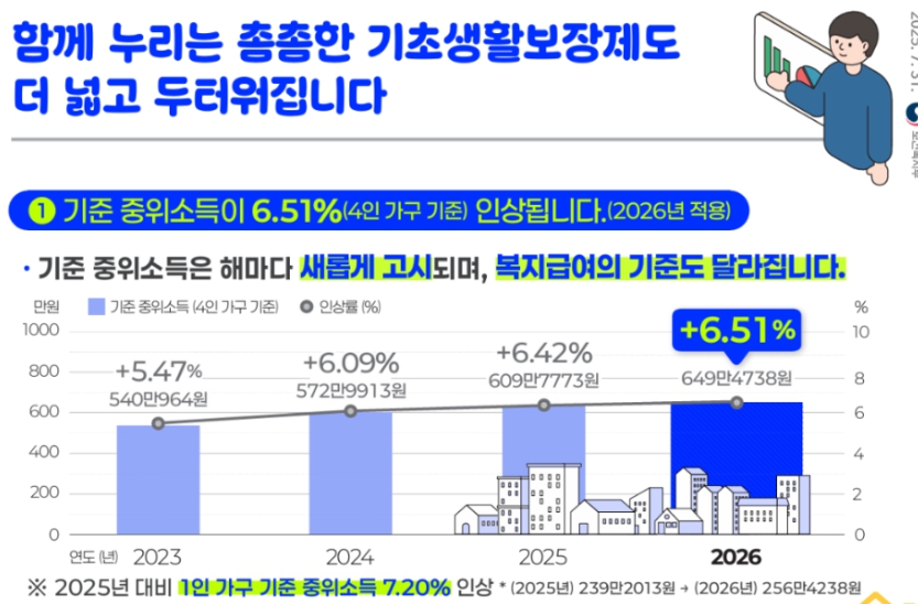 [2026년 기준중위소득] 역대 최대 인상! 4인 가구 649만 원, 당신의 복지 혜택은 얼마나 늘어날까?