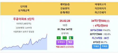 주공5단지 34평 34.75억 신고가