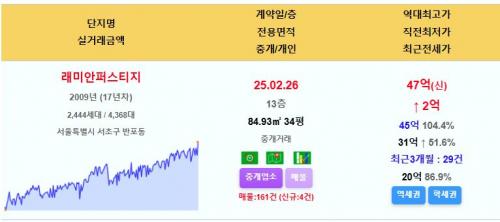 래미안퍼스티지 34평 47억 신고가