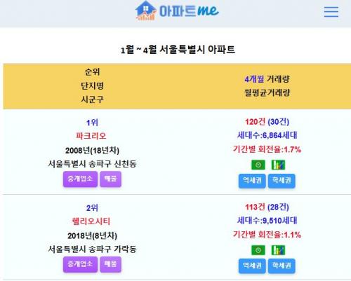 25년 거래량순위(국평순위,평단가순위) - 1위:파크리오 2위:헬리오시티 > 부동산포럼