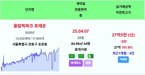 광명시 철산역롯데캐슬&SKVIEW클래스티지 28평 11.5억 신고가