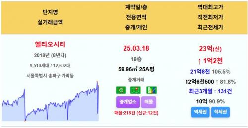 헬리오시티 25평 23억 신고가~