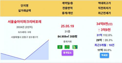 서울숲아이파크리버포레 35평 34.9억 신고가