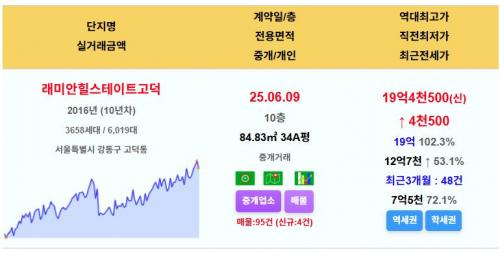 동대문 이문아이파크자이 25평 12.44억 신고가