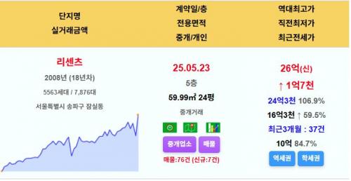 송파구 올림픽선수기자촌1단지 34평 25.5억 신고가