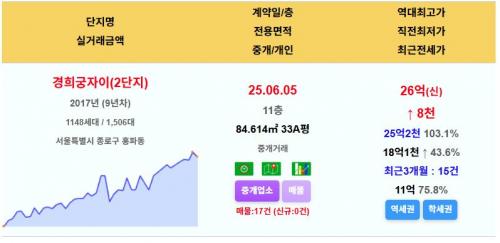 경희궁자이(2단지) 33평 26억 신고가