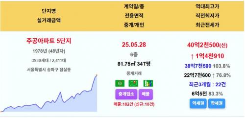 잠실주공5단지 34평 40.25억 신고가