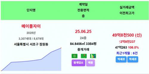 서초구 메이플자이 33평 49.85억 신고가