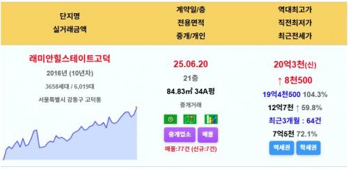 강동구 래미안힐스테이트고덕 34평 20.3억 신고가