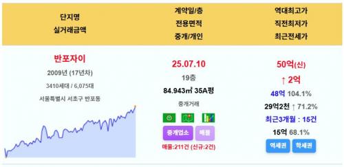서초구 반포자이 35평 50억 신고가