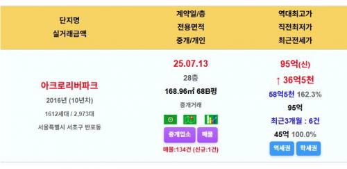 서초구 래미안신반포팰리스 51평 55억 최고가