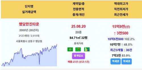 마포구 마포한강2차푸르지오 44평 25.7억 신고가