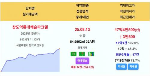 동작구 상도역롯데캐슬파크엘 33평 17.45억 신고가