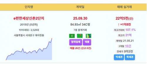 e편한세상신촌2단지 34평 22.5억 신고가