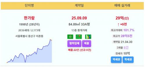 성남시 분당구 청솔마을(한라) 23평 12.95억 신고가