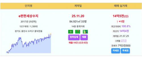 광교 자연앤힐스테이트 33평 18.5억 신고가