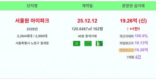 은평구 우물골2단지두산위브(245~255동)BL2-6 50평 11.6억 신고가