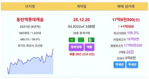안양시 동안구 초원마을대원 23평 9.49억 신고가