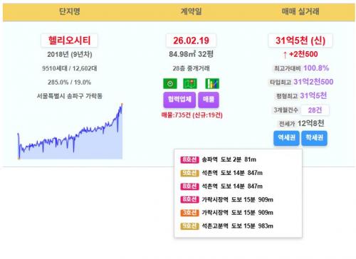 송파구 헬리오시티 31.5억 신고가~!!