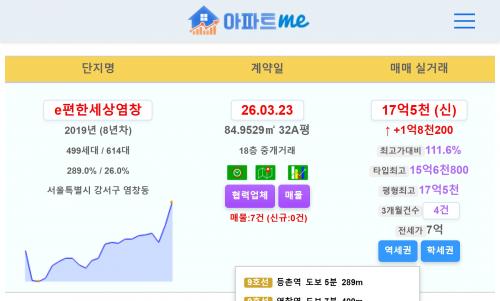 강서구 e편한세상염창 32평 17.5억 신고가~!!