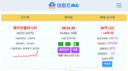 동대문 래미안엘리니티 34평 20억 신고가~!!