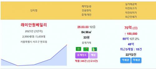 사당롯데캐슬골든포레 34평 13.2억 신고가