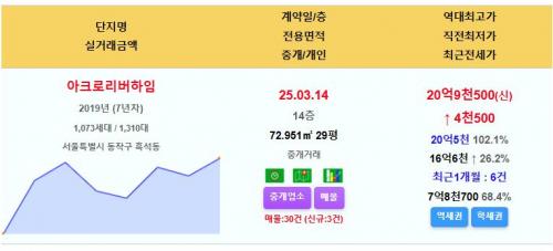 동작 아크로리버하임(7년차) 29평 20.95억 신고가