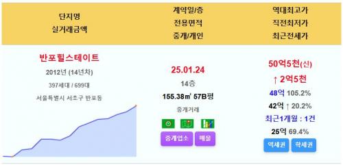 서초구 반포힐스테이트 57평 50.5억 신고가