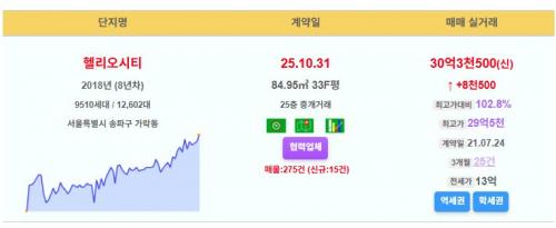 송파구 문정가락현대1차 31평 20억 신고가