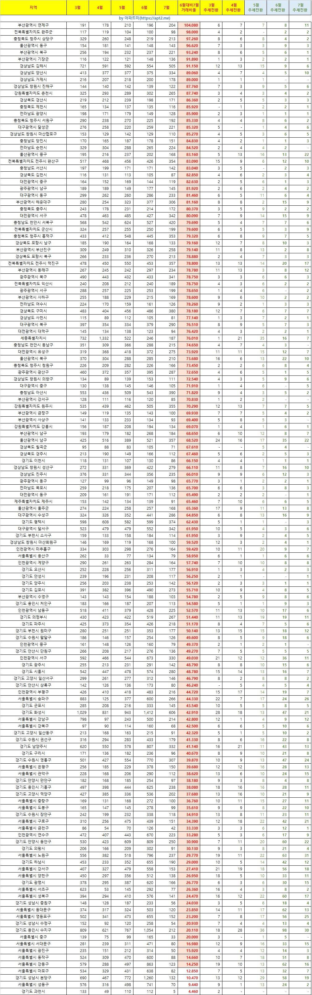 추세전환 : 아직 상승하지 않은 단지들중 변화가 생기는 시점의 거래들