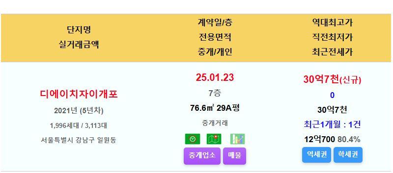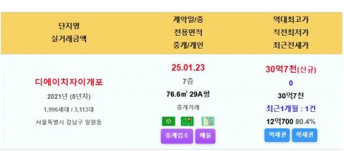 디에이치자이개포 29평 30.7억 신고가