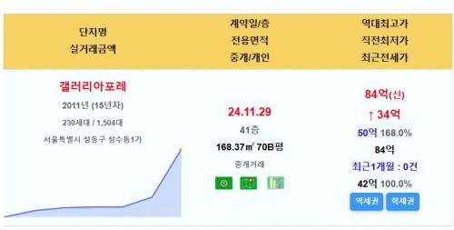 갤러리아포레 70평 84억 신고가
