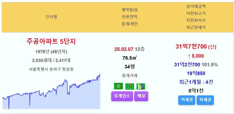잠실올림픽공원아이파크 25평 16.7억 신고가
