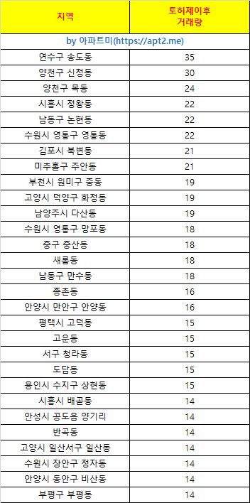 토허제 이후 지역(동)별 거래량 > 부동산포럼