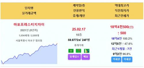 [아파트미] 2월20일 실거래(전체:1,833건 신고가:102건)