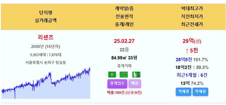 레이크팰리스(20년차) 34평 27.5억 신고가