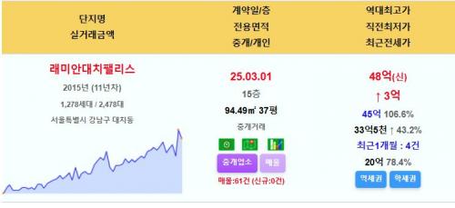 래미안대치팰리스 38평 48억 신고가