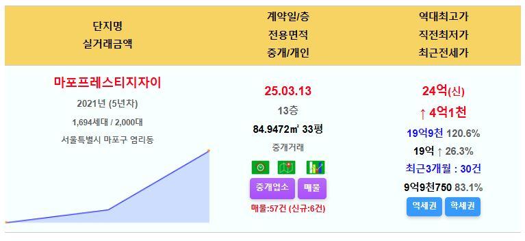 마포프레스티지자이 34평 24억 마포구 국평 돌파 신고가